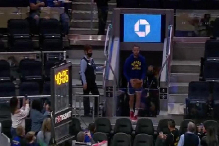 Ο 33χρονος σταρ των «πολεμιστών», ο οποίος στην καριέρα του έχει σημειώσει τρίποντα με κάθε πιθανό και απίθανο τρόπο, είπε να αυξήσει το επίπεδο δυσκολίας και αυτή την φορά το τερμάτισε κυριολεκτικά.