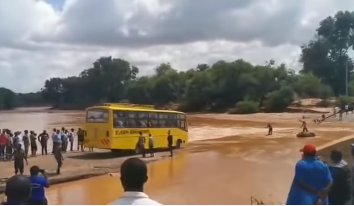 Το λεωφορείο, που μετέφερε μια εκκλησιαστική χορωδία και άλλους ανθρώπους σε γαμήλια τελετή στην κομητεία Κιτούι, ανατράπηκε πριν βυθιστεί.