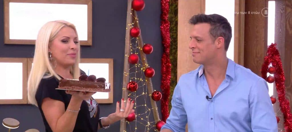 Με τούρτα μπήκε σήμερα στο πλατό της εκπομπής της η Ελένη Μενεγάκη καθώς ένας από τους συνεργάτες της έχει γενέθλια.