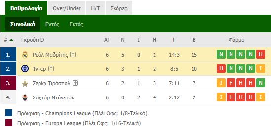 Στον «τελικό» της πρώτης θέσης του τέταρτου ομίλου η Ρεάλ επικράτησε με 2-0 της Ίντερ, την ώρα που η… ελληνική Σέριφ ερχόταν ισόπαλη με 1-1 στην Ουκρανία κόντρα στη Σαχτάρ έχοντας ήδη εξασφαλίσει όμως το εισιτήριο για το Europa League.
