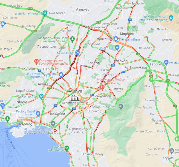 Με πολλά προβλήματα διεξάγεται, και σήμερα Πέμπτη, η κυκλοφορία σε κεντρικές οδικές αρτηρίες της Αττικής.