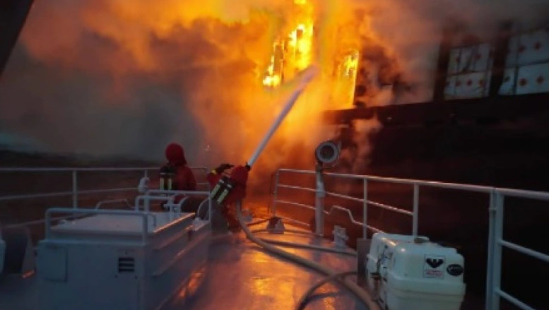 Πλοίο καίγεται επί 5 μέρες στη θάλασσα – Μεταφέρει ξύλα – Δείτε τις προσπάθειες των πυροσβεστών