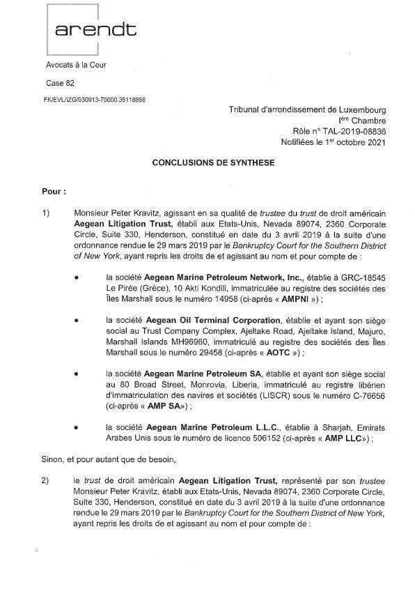 The lawsuit was filed by the Aegean Litigation Trust, which was established as part of the restructuring process following an order by a relevant US bankruptcy court, with the purpose for the purpose of pursuing claims of Aegean for the benefit of Aegean’s creditors. AMPNI, AOTC, AMP SA and AMP LLC have transferred their Litigation Claims to the Trust.