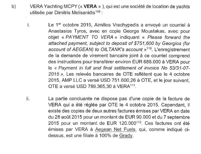 Again, according to the lawsuit, Melissanidis claims that Tyros was an experienced engineer; that Aegean wanted a contract with him for managing the construction of the terminal station, and that Tyros incorporated OTE to provide these services. It’s also claimed that Melissanidis could not have had participation in decisions for the terminal station at Fujairah. Melissanidis’ side appears to also claim that 16.2 million USD was, indeed, paid to OTE, and cites a valuation of the terminal station of 189 million USD.