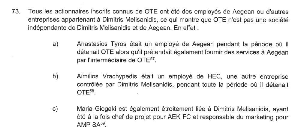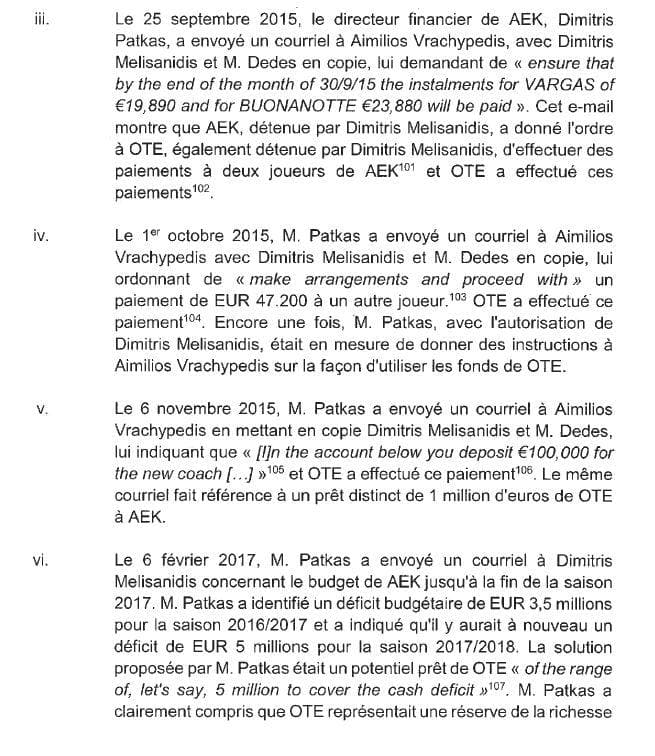 According to the law suit, “…Emails found on AMPNI’s servers passing between Dimitris Melissanidis, AEK officials and Mr. Vrachypedis reveal that between 2015 and 2018, Aegean funds were channelled through OTE to AEK to pay players and coaches and cover operating deficits. Significantly, these emails once again demonstrate that it was Dimitris Melissanidis who had to authorise payments from OTE to AEK and not Mr. Vrachypedis”.