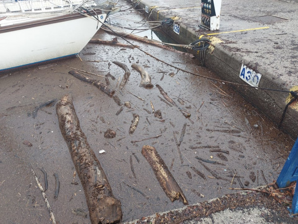 Λόγω των θαλάσσιων ρευμάτων, όπως αναφέρει η ΕΡΤ, κορμοί, λάσπη και ότι μπορεί κανείς να φανταστεί… έχουν δημιουργήσει την αποκρουστική αυτή εικόνα ανάμεσα στα σκάφη αναψυχής στη μαρίνα.