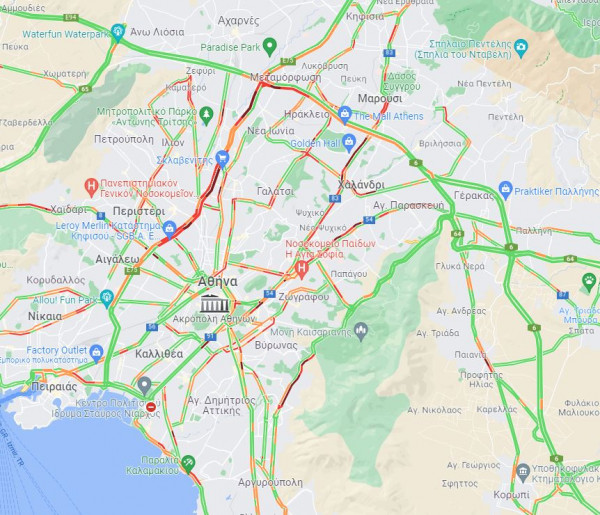 Για ακόμη μια φορά, το μεγάλο πρόβλημα εντοπίζεται στον Κηφισό: Στην άνοδο από Σεπόλια μέχρι Νέα Φιλαδέλφεια και στην κάθοδο από Μεταμόρφωση και τμηματικά μέχρι τα ΚΤΕΛ.