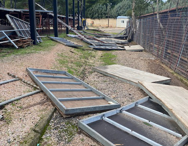 Η ισχυρή καταιγίδα με ριπές ανέμου που έφτασαν στιγμιαία τα 12 μποφόρ προκάλεσε πλημμυρικά φαινόμενα και εκτεταμένες καταστροφές στις εγκαταστάσεις του Terra Vibe Park.