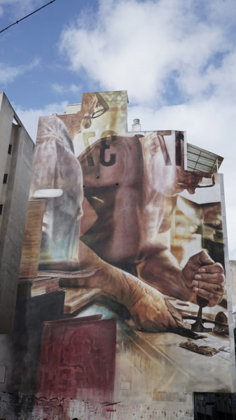 Ο διεθνούς φήμης Αυστραλός street artist Guido van Helten έφτασε στην Αθήνα στα μέσα Νοεμβρίου, ύστερα από πρόσκληση της Πρεσβείας της Αυστραλίας στην Ελλάδα και του Δήμου Αθηναίων, και φιλοτέχνησε μια μεγάλων διαστάσεων τοιχογραφία, η οποία αποτίει φόρο τιμής στη γειτονιά της Αθήνας που τη φιλοξενεί και είναι ταυτισμένη με την έκδοση και διακίνηση των βιβλίων. Η πρωτοβουλία αποτελεί συνδιοργάνωση του Δήμου Αθηναίων και της Πρεσβείας της Αυστραλίας στην Ελλάδα