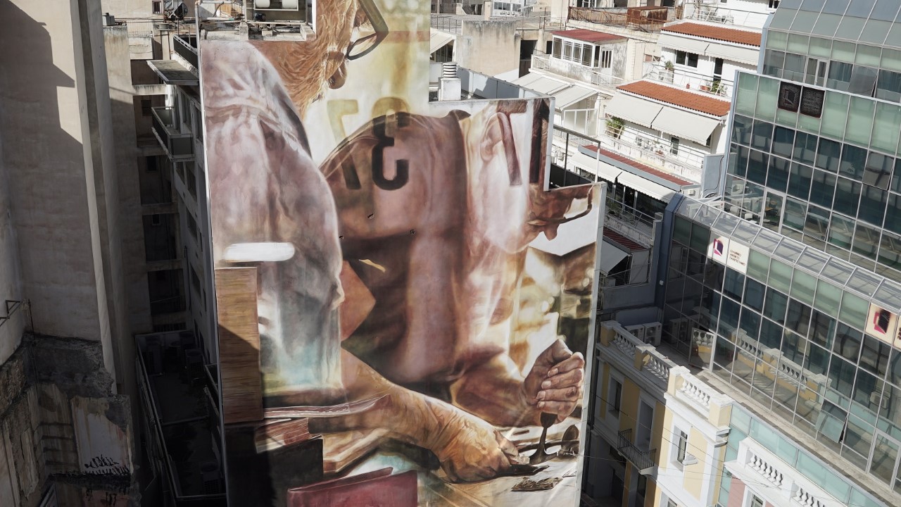 Ο κορυφαίος Αυστραλός εικαστικός Guido van Helten «υπογράφει» τη νέα τοιχογραφία στα Εξάρχεια