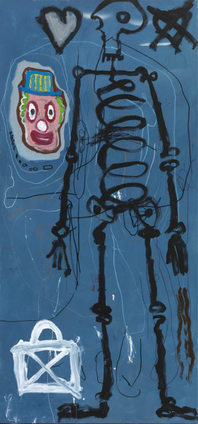 Η έκθεση τιτλοφορείται Skulls and Hearts. Θα δείτε, λοιπόν, έργα μεγάλων αλλά και μικρότερων διαστάσεων με Νεκροκεφαλές και Καρδιές, θα δείτε λουλούδια και σφαίρες, αιδοία και φαλλούς, χρωμοσώματα και σκελετούς, δέντρα και κρεμάλες και πολύ χρώμα. Η καινούργια μου δουλειά, αν και τεχνικά έχει συνέχεια απο την της προηγούμενη, έχει κάνει ένα άνοιγμα προς την αφαίρεση. Έτσι, ναι μεν θα βρείτε τα γνώριμα πυκνοκατοικημένα έργα, θα τους δείτε όμως να συνδιαλέγονται και να αλληλοσυμπληρώνουν, να υποστηρίζουν ή να έρχονται σε ρήξη, με άλλα πιο αφαιρετικά. Παρ’ όλο που φαινομενικά οι διαφορές και οι αντιθέσεις είναι ευδιάκριτες, το κάθε έργο, αν και έχει σαφώς τη δική του υπόσταση και σημασία, αποτελεί και μέρος ενός ευρύτερου συνολικού αφηγήματος.