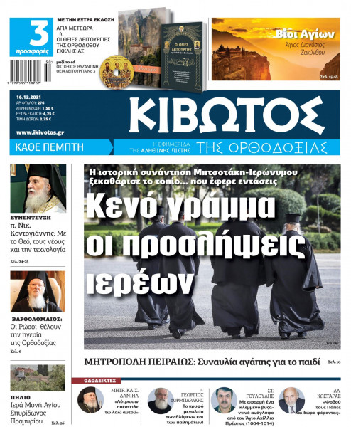 Την Πέμπτη, 16 Δεκεμβρίου 2021, κυκλοφορεί το νέο φύλλο της Εφημερίδας «Κιβωτός της Ορθοδοξίας». Μαζί με την Εφημερίδα προσφορές για όλους: δυο βιβλία για να επιλέξετε ένα, το καλύτερο για εσάς!