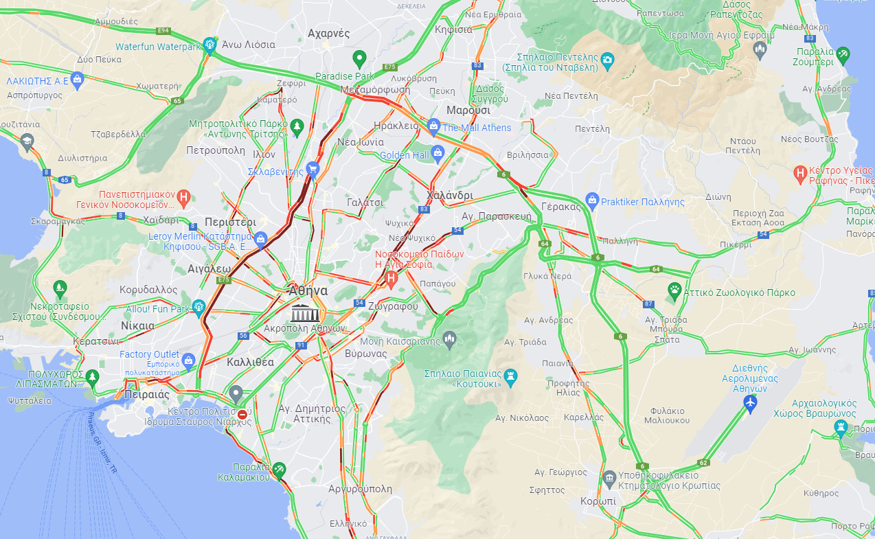 Με καθυστερήσεις η διέλευση και από το ρεύμα της καθόδου, όπου επίσης η κίνηση είναι αυξημένη. Στην Κηφισίας μεγαλύτερο πρόβλημα υπάρχει στην κάθοδο, από Χελέξπο ως Φιλοθέη.