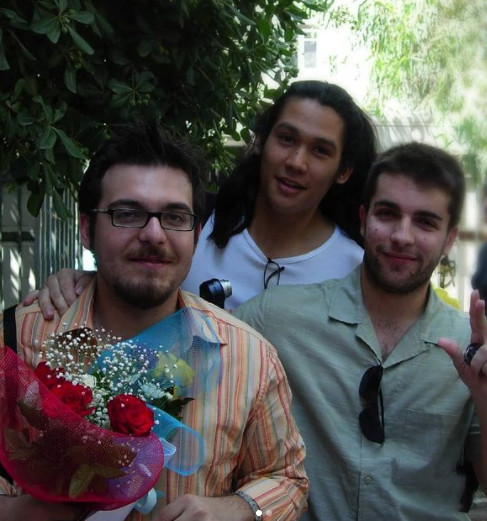 Ο Σωτήρης Κοντιζάς σχεδόν αγνώριστος ποζάρει με τους φίλους τους στην αποφοίτησή τους.