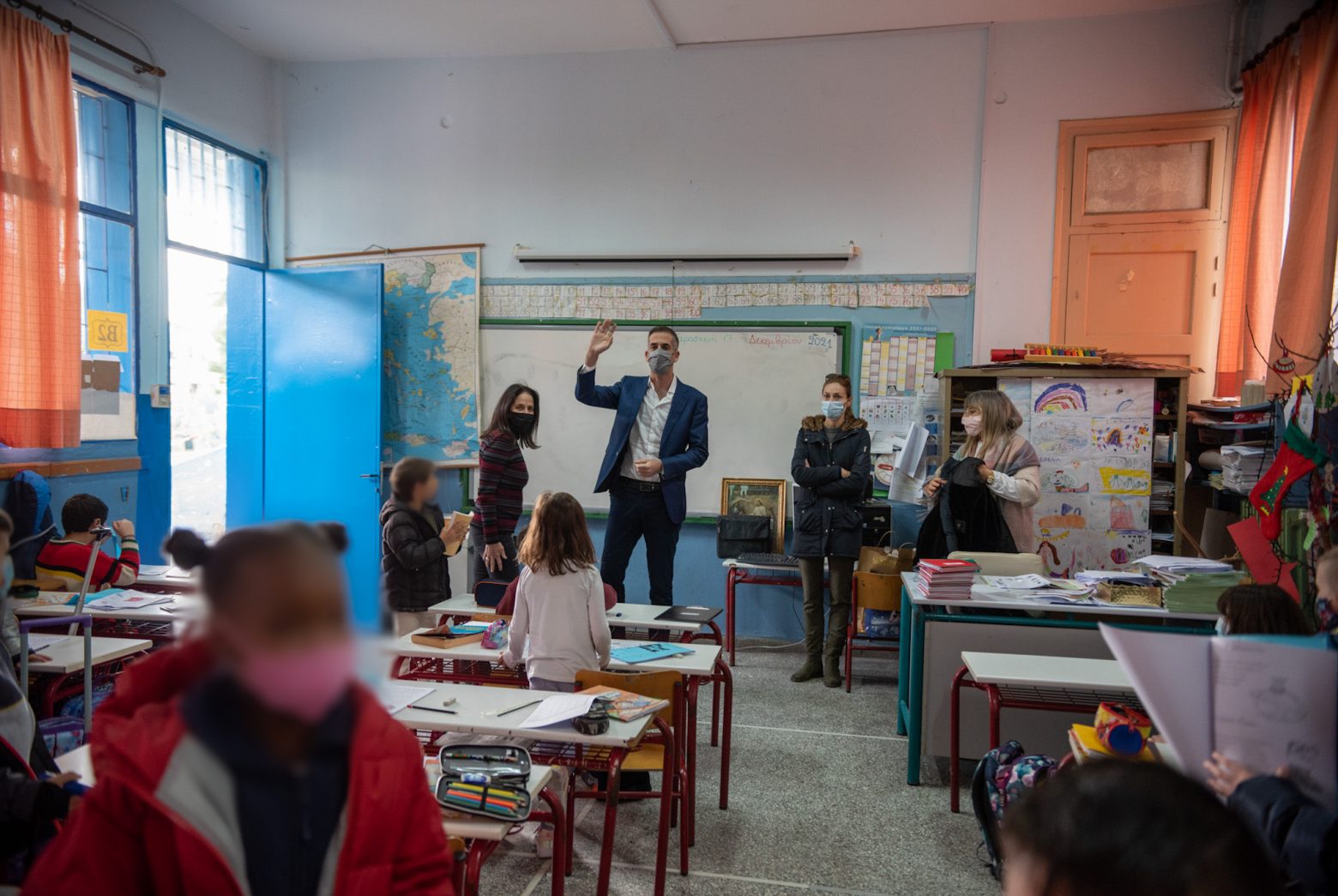 Το σχολείο, το οποίο επαναλειτουργεί κανονικά, επισκέφθηκε σήμερα ο Δήμαρχος Αθηναίων Κώστας Μπακογιάννης, ο οποίος συνομίλησε με μικρούς μαθητές μέσα στις τάξεις, ενώ είχε εκτενή συζήτηση με τη Διευθύντρια του Σχολείου καθώς και με εκπρόσωπο του Συλλόγου Γονέων και Κηδεμόνων.