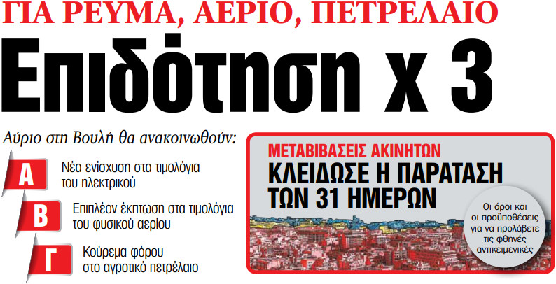 Στα «ΝΕΑ» της Παρασκευής – Επιδότηση χ 3