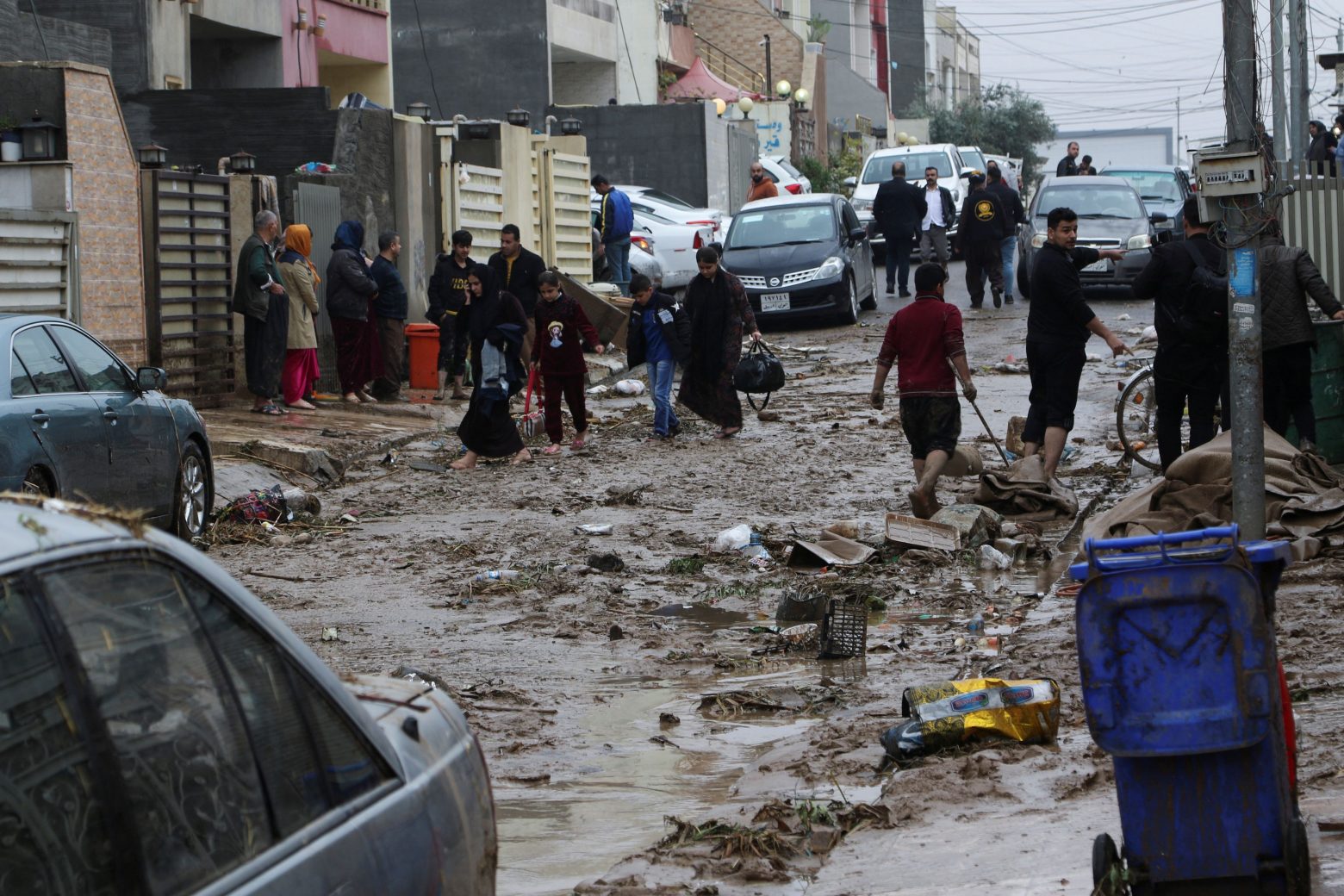 Στα περίχωρα του Αρμπίλ, δημοσιογράφος του Γαλλικού Πρακτορείου είδε χείμαρρους λάσπης να κυλάνε στους δρόμους. Στην άκρη ορισμένων δρόμων, λεωφορεία, βαρέα οχήματα, βυτιοφόρα παρασύρθηκαν από τα νερά και βρέθηκαν το ένα δίπλα στο άλλο στο κράσπεδο, μερικά γερμένα στο πλάι.