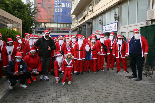 Στο πνεύμα των ημερών φόρεσαν τη στολή του Άι Βασίλη – του αγίου που έχει μια ξεχωριστή θέση στην καρδιά των παιδιών και των μεγάλων – και έτρεξαν με εκκίνηση την πλατεία Κοραή και τερματισμό το εμβληματικό Δημοτικό Θέατρο, στέλνοντας μήνυμα ελπίδας, χαράς και αισιοδοξίας.