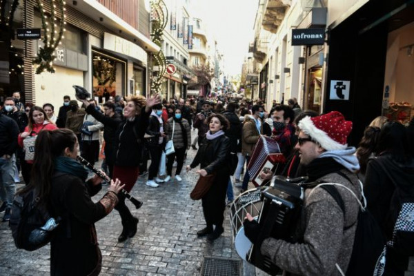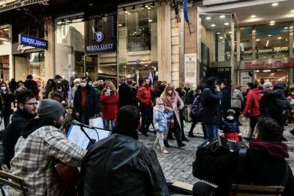 Οι Αθηναίοι παρά το τσουχτερό κρύο και την πτώση της θερμοκρασίας, βγήκαν στο κέντρο για να κάνουν τη βόλτα τους αλλά και να πραγματοποιήσουν τις αγορές τους.