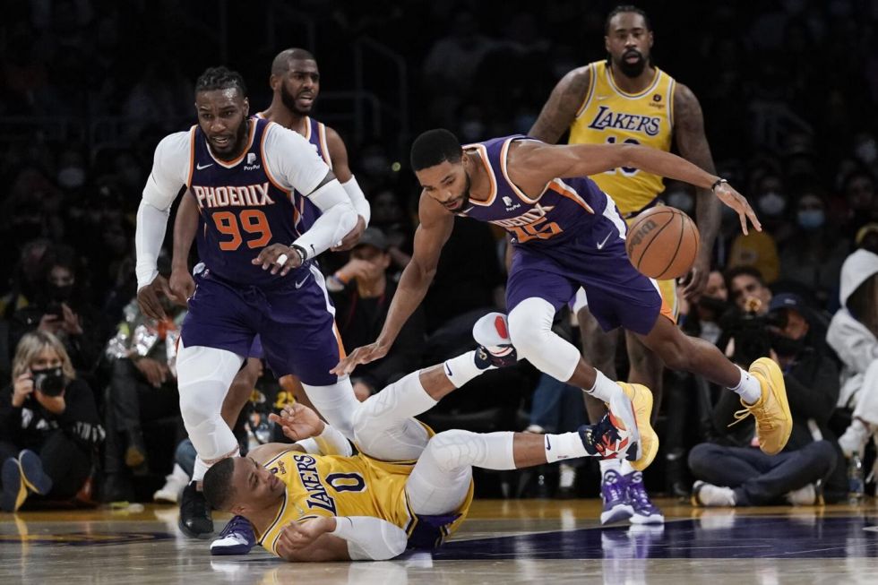 Οι πολλές απουσίες των Λέικερς άφησαν τους Λεμπρόν Τζέιμς (34 πόντοι, 7 ριμπάουντ) και Ράσελ Ουέστμπρουκ (22 πόντοι, 10 ριμπάουντ, 5 ασίστ) να παλεύουν μόνοι τους και οι Σανς έφτασαν σε μία άνετη νίκη στο Λος Άντζελες (108-90).