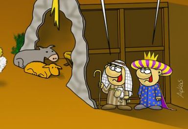 Στο σημερινό σκίτσο, με το οποίο μας καλημερίζει ο καλλιτέχνης, ο μικρός μπόμπιρας συμμετέχει σε παράσταση στο σχολείο του για τη γέννηση του Θεανθρώπου.