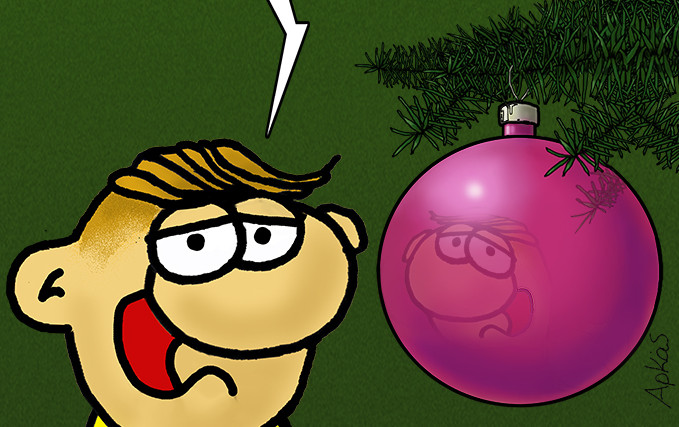 Στο νέο του σκίτσο βλέπουμε τον αγαπημένο ήρωα μικρών και μεγάλων, τον Θανασάκη, να κάθεται μπροστά από το χριστουγεννιάτικο δέντρο και να μας δίνει… «πολλέθ ευχέθ».
