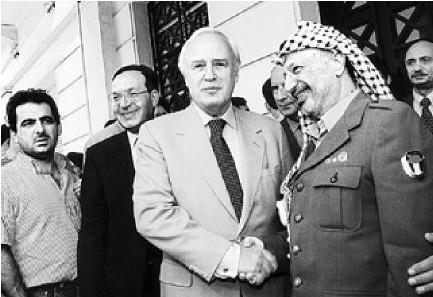 Ιούλιος 1995. Υποδεχόμενος τον Γιάσερ Αραφάτ στο υπουργείο Εξωτερικών