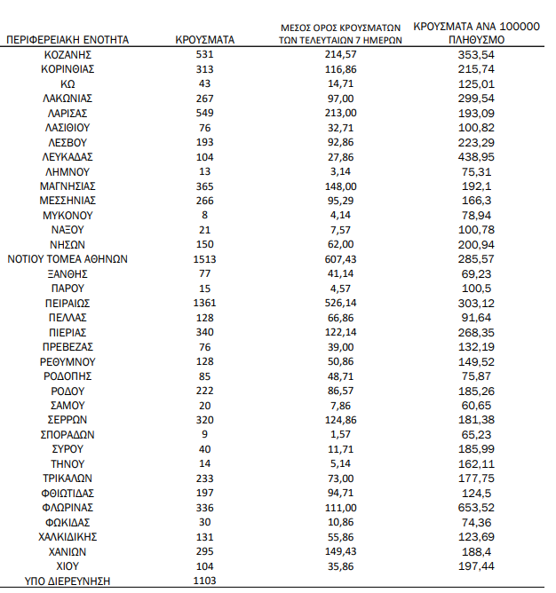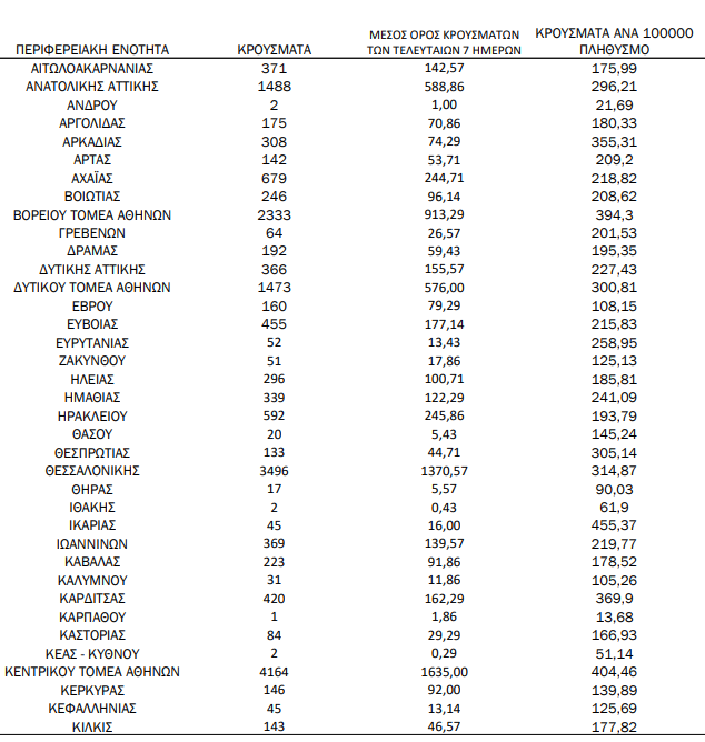 Τέλος Δυτική Αττική και νησιά του Αργοσαρωνικού καταγράφουν 366 και 150 κρούσματα αντίστοιχα.