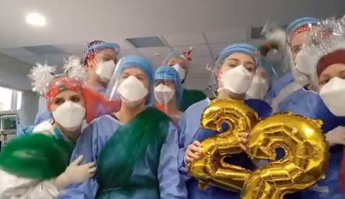 Το υγειονομικό προσωπικό που βρίσκεται πάντα στην πρώτη γραμμή της μάχης κατά της πανδημίας, μέτρησε αντίστροφα για την έλευση του 2022 και πόσταρε το βίντεο στο Twitter.