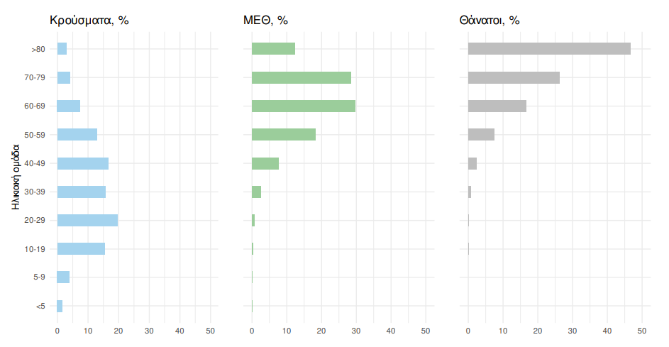 Η διάμεση ηλικία των κρουσμάτων είναι 36 έτη (εύρος 0.2 έως 106 έτη), ενώ η διάμεση ηλικία των θανόντων είναι 78 έτη (εύρος 0.2 έως 106 έτη).