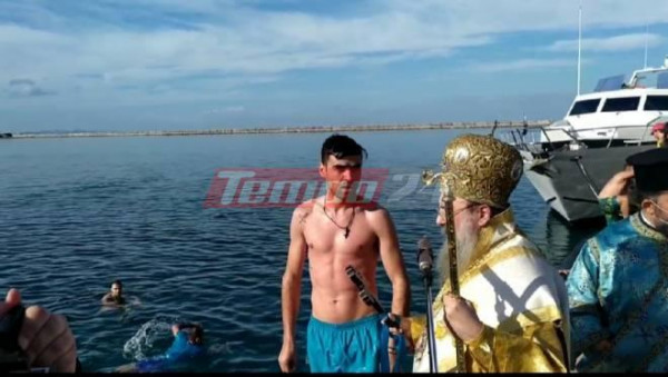 Περισσότερα από 30 άτομα βούτηξαν σήμερα στα νερά του βόρειου λιμανιού της Πάτρας, για να πιάσουν τον σταυρό. Τελικά, τον σταυρό τον έπιασε ένας 23χρονος, ο οποίος στην συνέχεια τον παρέδωσε στον μητροπολίτη Πατρών, Χρυσόστομο.