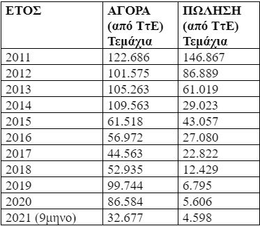 Συνεχίστηκαν το 2021 οι μαζικές ρευστοποιήσεις λιρών, με τις πωλήσεις να είναι για ακόμη μία χρονιά πολλαπλάσιες των αγορών, όπως προκύπτει από τα στοιχεία της Τράπεζας της Ελλάδος (ΤτΕ)