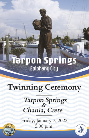 Επισημαίνεται ότι σήμερα το απόγευμα, στις 17.00 (τοπική ώρα), θα πραγματοποιηθεί από τους δύο Δημάρχους η τελική υπογραφή του πρωτοκόλλου αδελφοποίησης του Δήμου Χανίων με το Τάρπον Σπρινγκς, στο πλαίσιο επίσημης τελετής στο αμφιθέατρο του Δημαρχείου του Τάρπον Σπρινγκς. Υπενθυμίζεται ότι η πρώτη φάση της αδελφοποίησης είχε πραγματοποιηθεί στις 20 Σεπτεμβρίου 2021, σε μια συμβολική τελετή στο Φρούριο Φιρκά, στο Ενετικό Λιμάνι των Χανίων, παρουσία του Δημάρχου του Τάρπον Σπρινγκς, Χρυσόστομου Αλαχούζου.