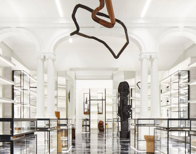 Όπως είναι αναμενόμενο από μια εγκατάσταση Slimane, το μάρμαρο και οι καθρέφτες πρωταγωνιστούν, δίνοντας μια αίσθηση γαλλικού glam. Η νέα μπουτίκ δένει το παλιό και το σύγχρονο το παγωμένο και στιβαρό μάρμαρο, που κλείνει το μάτι στην μπουτίκ της Σανέλ στην οδόν Καμπόν στέκεται μια σειρά από νέα έργα τέχνης, από την γλύπτρια Leilah Babirye και τη ρωσικής καταγωγής καλλιτέχνη Nika Neelova.