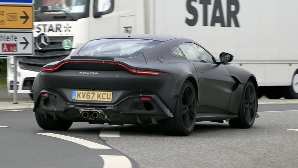 Στο πίσω τμήμα κυριαρχούν οι κεντρικά τοποθετημένες απολήξεις της εξάτμισης οι οποίες στο τελικό προϊόν αναμένεται να ενσωματώνονται στον αεροδυναμικό διαχύτη. Επίσης το πτερύγιο που δεσπόζει στην κορυφή του πορτ μπαγκάζ πρέπει να αποτελεί πρόβα τζενεράλε για κάποιου είδους ενεργού αεροδυναμικού βοηθήματος που θα ενσωματωθεί στα χαρακτηριστικά του μοντέλου. Δεδομένες θα πρέπει να θεωρούνται οι σκληροπυρηνικές ρυθμίσεις του πλαισίου οι οποίες θα κινηθούν στο ίδιο μοτίβο με την V12 Speedster, ευνοώντας την κίνηση της V12 Vantage σε περιβάλλον πίστας.