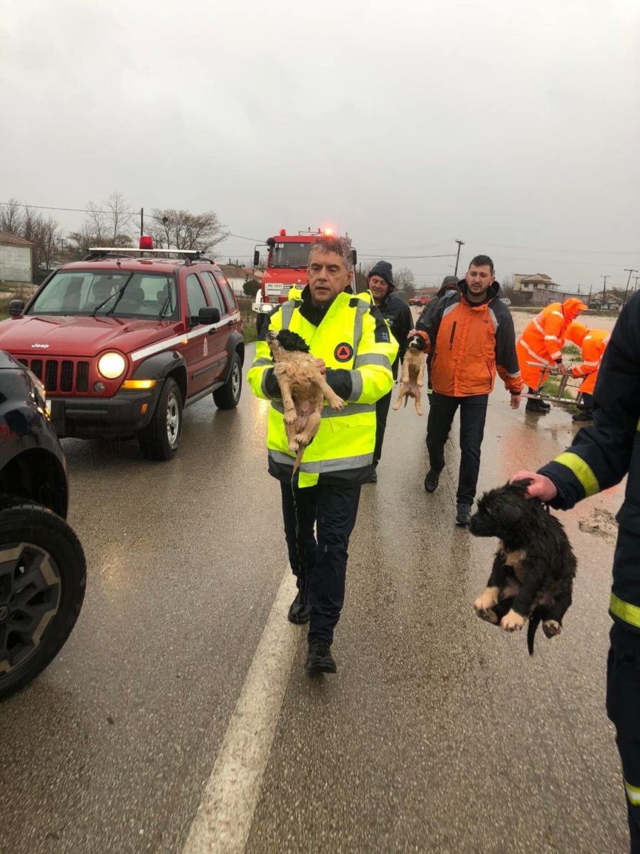 Απίστευτη διάσωση 4 κουταβιών από πυροσβέστες σε πλημμυρισμένο ποτάμι στα Φάρσαλα