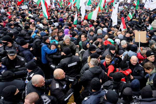 Κρατώντας βουλγαρικές σημαίες και λάβαρα του υπερεθνικιστικού κόμματος Αναγέννηση, που οργάνωσε τη συγκέντρωση, οι διαδηλωτές φώναζαν «Ελευθερία» και «Μαφία» και κατήγγειλαν όλα τα μέτρα που έχουν ληφθεί για την αντιμετώπιση της πανδημίας.
