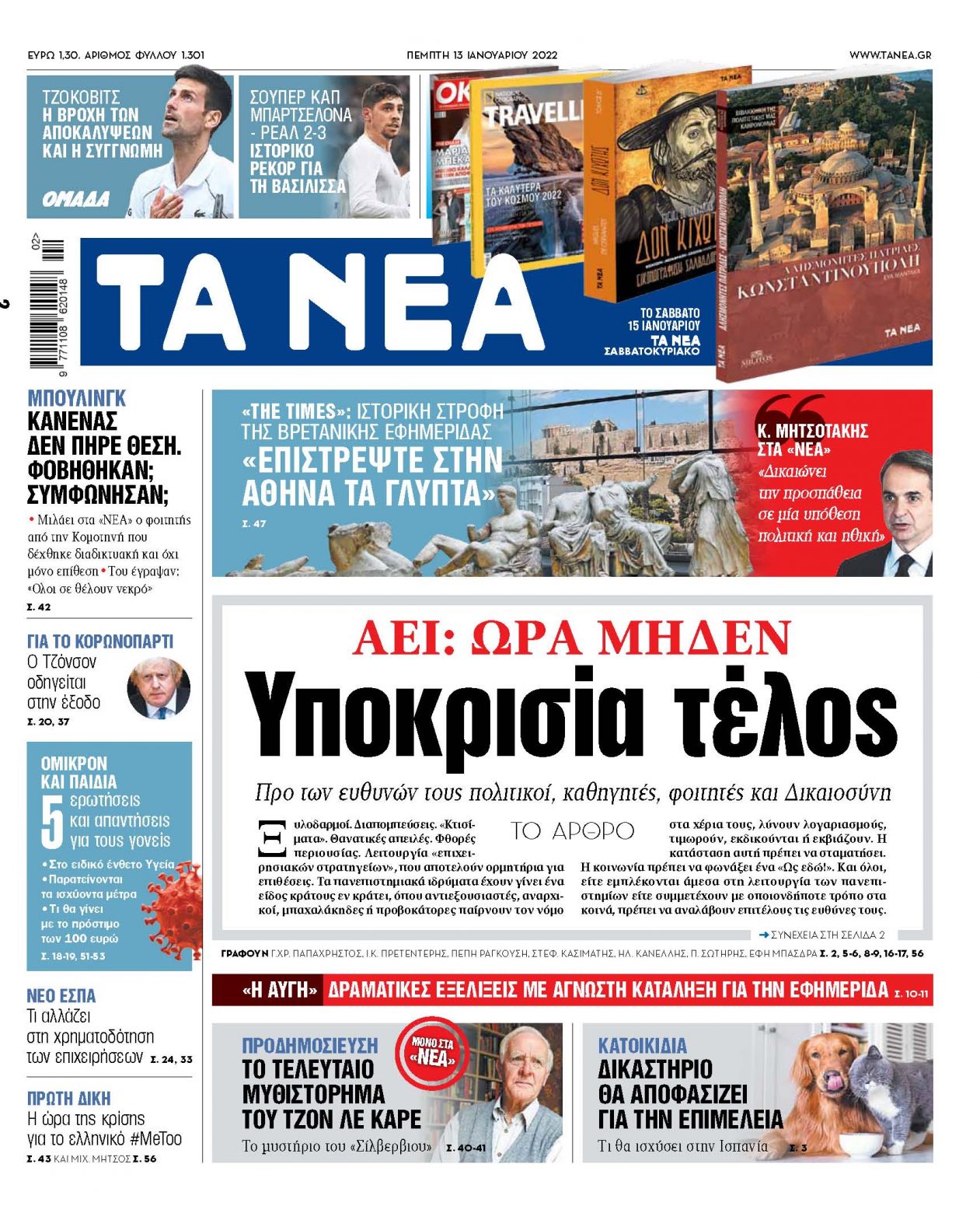 Στα ΝΕΑ της Πέμπτης – Υποκρισία τέλος