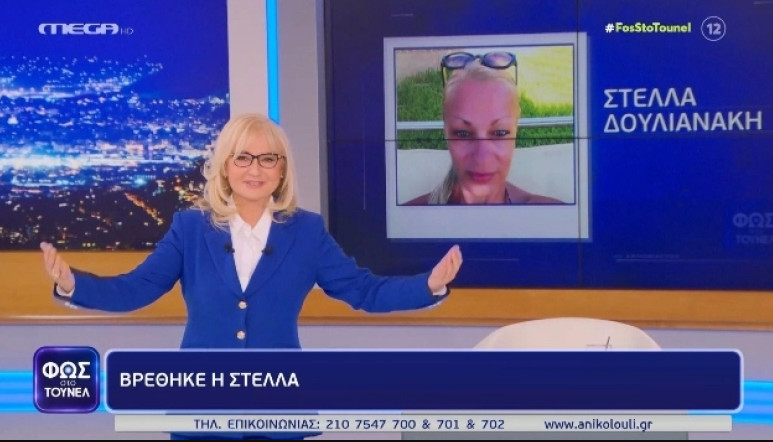 Εντοπίστηκε μέσω της εκπομπής «Φως στο τούνελ» η Στέλλα Δουλιανάκη, της οποίας τα ίχνη είχαν χαθεί για τέσσερις μήνες.