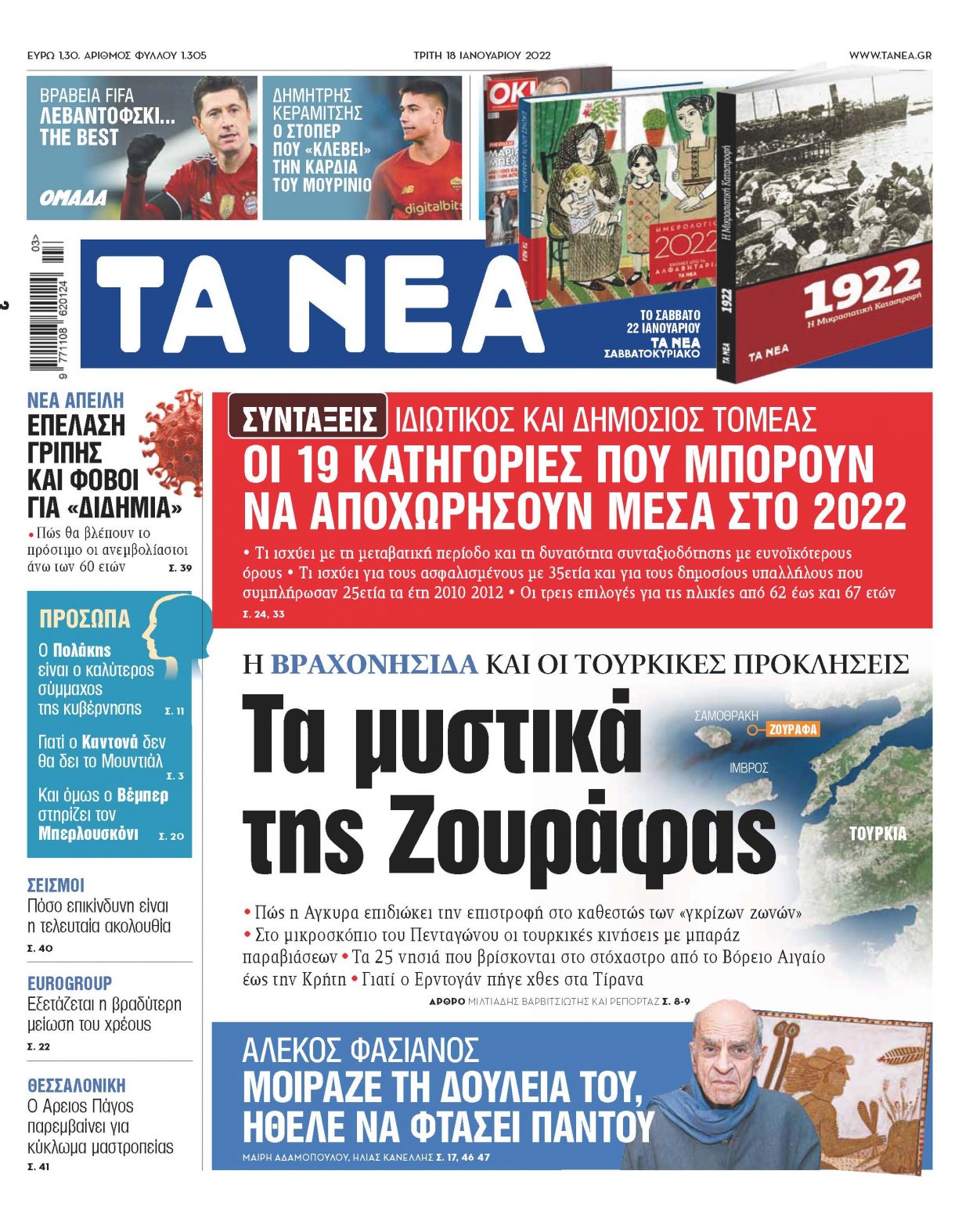 Στα «ΝΕΑ» της Τρίτης – Οι τουρκικές προκλήσεις – Τα μυστικά της Ζουράφας