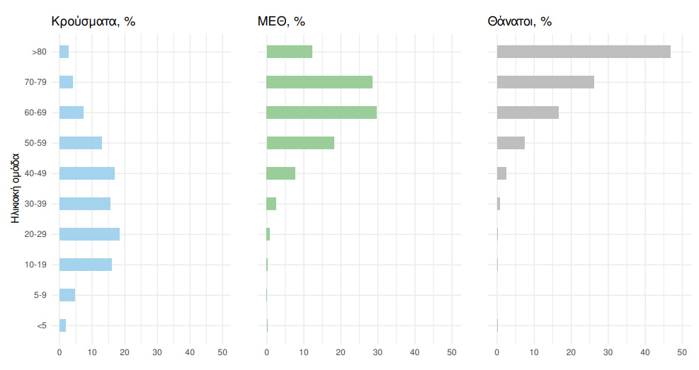 Η διάμεση ηλικία των κρουσμάτων είναι 36 έτη (εύρος 0.2 έως 106 έτη), ενώ η διάμεση ηλικία των θανόντων είναι 78 έτη (εύρος 0.2 έως 106 έτη).