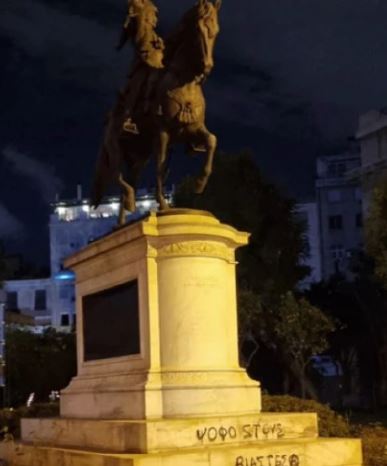 Άγνωστοι γέμισαν με συνθήματα αγάλματα στο κέντρο της Αθήνας