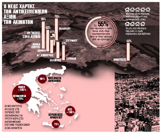 Αυτοί που αναμένεται να πληρώσουν περισσότερο φόρο συγκριτικά με το 2021 είναι οι ιδιοκτήτες ενός ακινήτου σε περιοχή όπου επέρχεται πολύ μεγάλη αύξηση της τιμής ζώνης. Στους χαμένους θα είναι κατά κύριο λόγο οι ιδιοκτήτες ακινήτων στις ζώνες που μπήκαν για πρώτη φορά στο αντικειμενικό σύστημα, καθώς οι αυξήσεις στις τιμές φθάνουν έως και 250%.