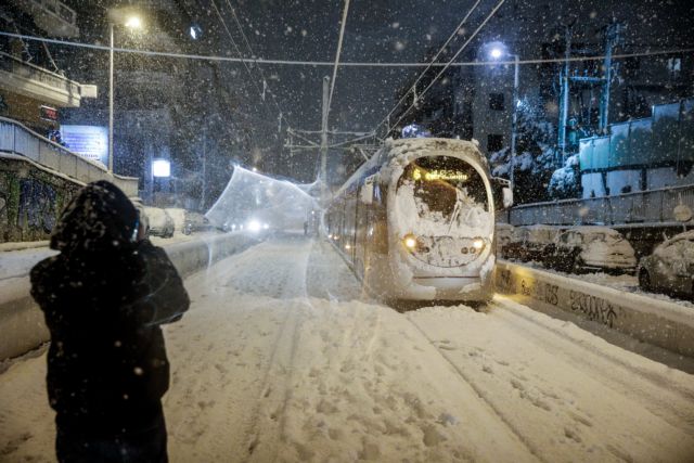 Λόγω του μεγάλου ύψους χιονιού, το τραμ ακινητοποιήθηκε το βράδυ της Δευτέρας.