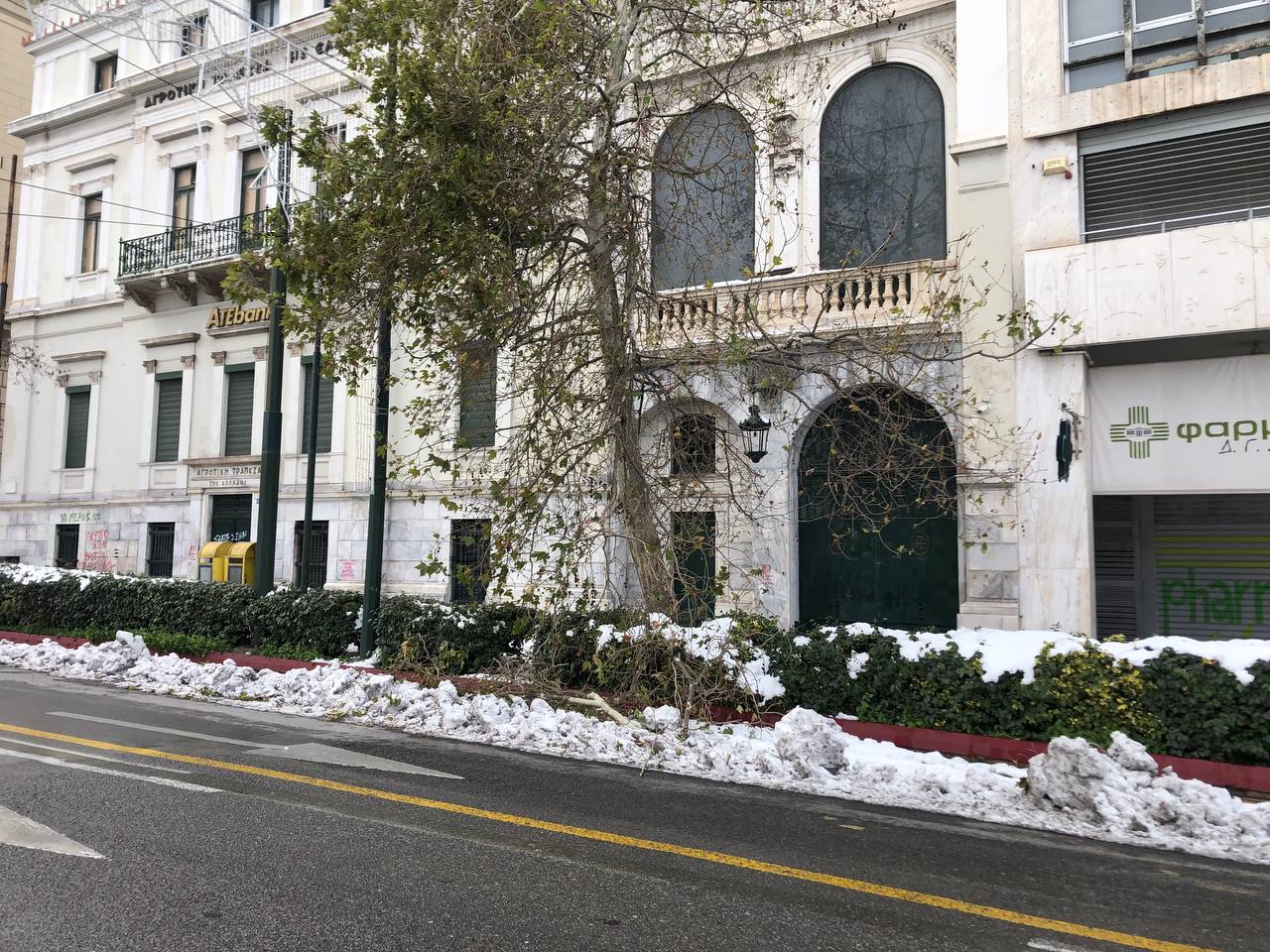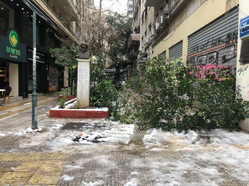 Η αργία έχει στην ουσία ερημώσει το κέντρο της πόλης και την κίνηση να είναι ελάχιστη. Τα εκχιονιστικά έχουν περάσει από νωρίς το πρωί αλλά σε ορισμένους δρόμους το χιόνι παραμένει, ενώ όπως ήδη αναφέραμε σε προηγούμενο κείμενο πολλά είναι τα πεσμένα δέντρα που έχουν προκαλέσει ζημιές.