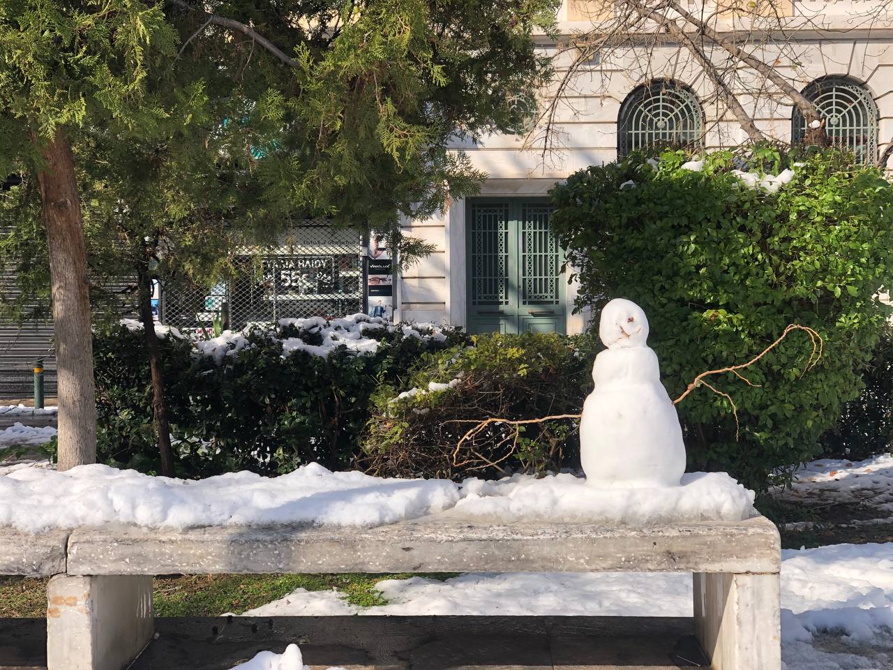 Οι πεζοί επιλέγουν να περνάνε από τους δρόμους, καθώς τα πεζοδρόμια έχουν ακόμα πάγο και γλιστράει αρκετά. Κάποιοι στις βόλτες τους έχουν φτιάξει και χιονάνθρωπους που έχουν μείνει ακόμα άθικτοι.