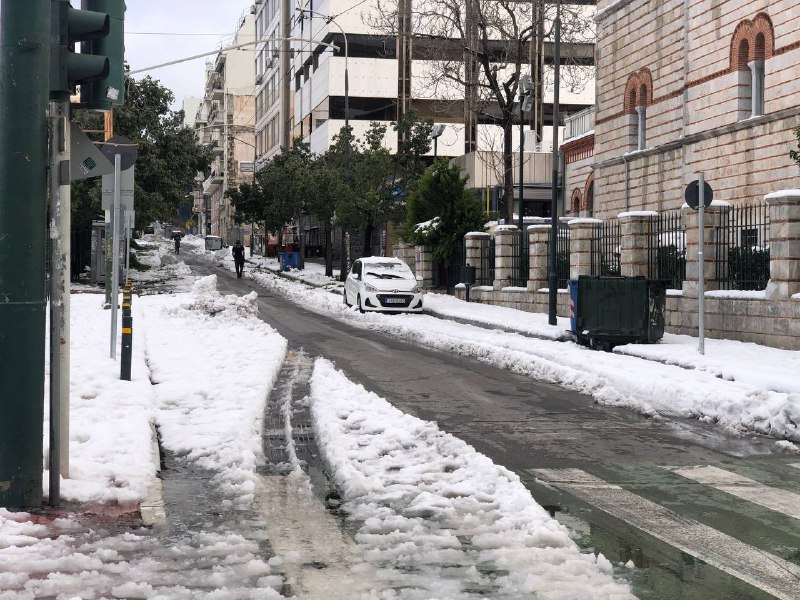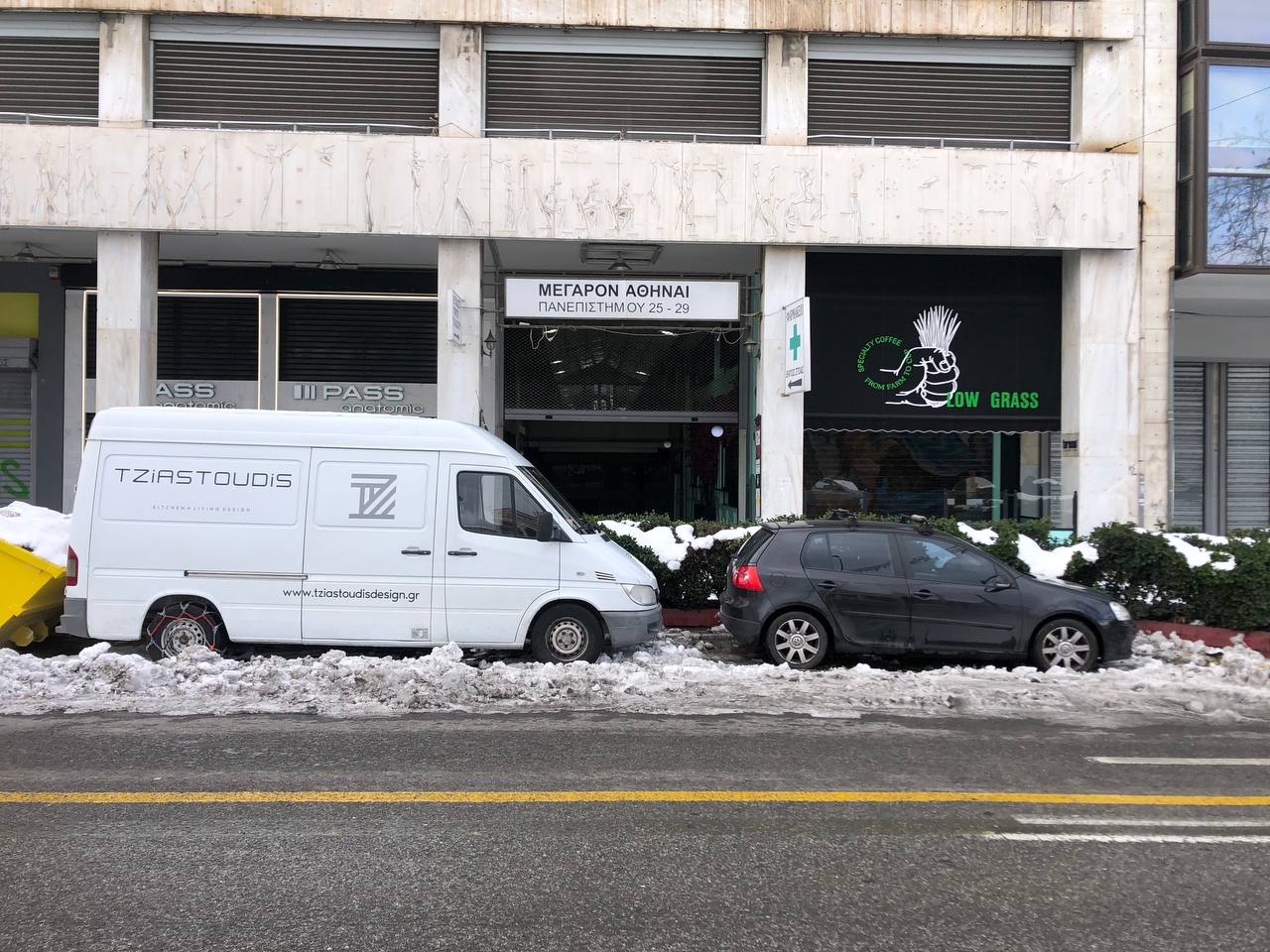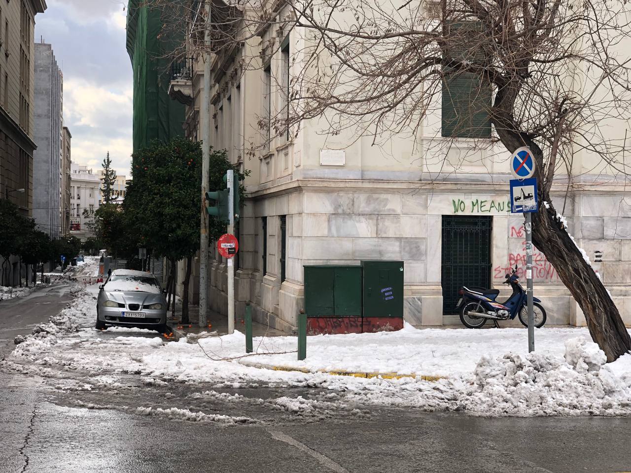 Αρκετά είναι τα παρατημένα οχήματα που υπάρχουν σε διάφορα σημεία του κέντρου. Προφανώς, οι ιδιοκτήτες τους φοβήθηκαν να φύγουν με τις δύσκολες συνθήκες που επικρατούσαν χθες και θα γυρίσουν να τα πάρουν μόλις η οδήγηση καταστεί πιο εύκολη.