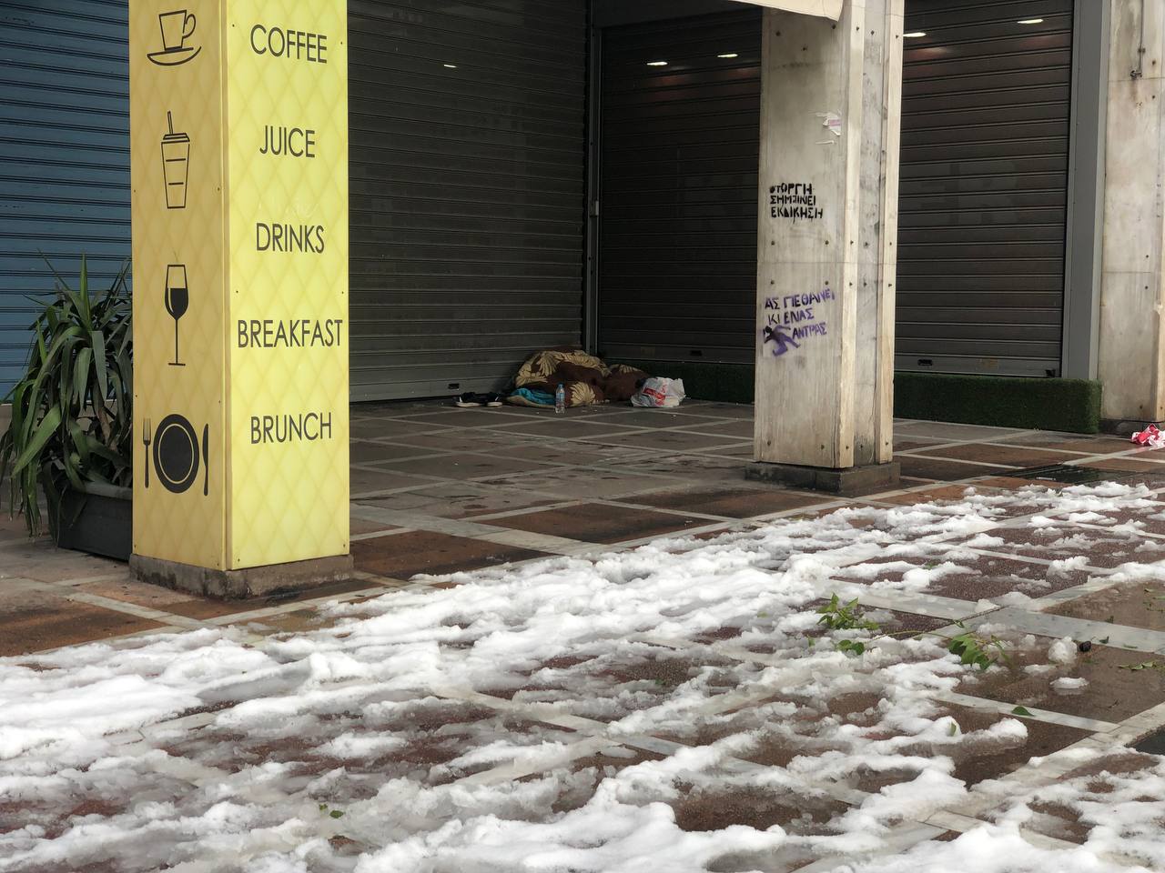 Δυστυχώς, στους δρόμους της πόλης, παρόλο που υπάρχει τέτοιο κρύο, οι άστεγοι δεν λείπουν.
