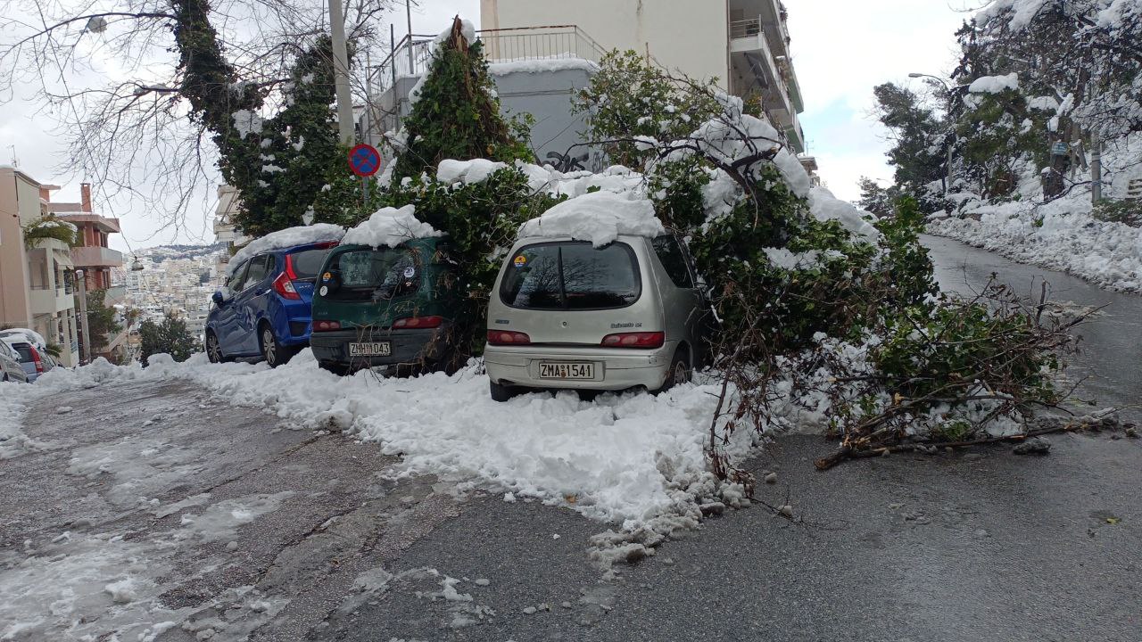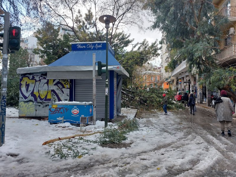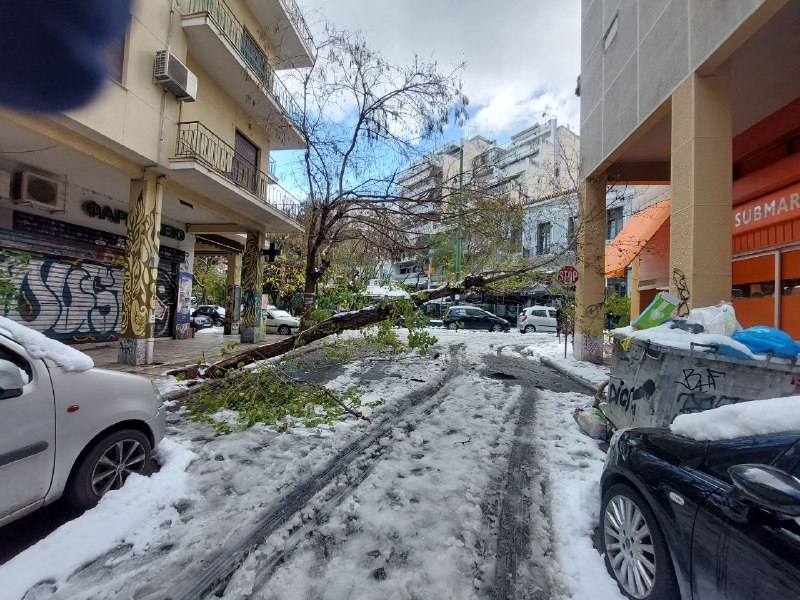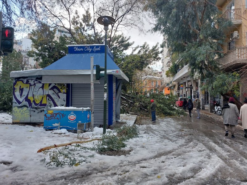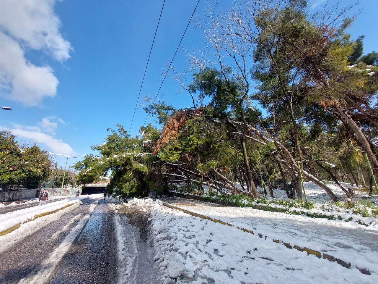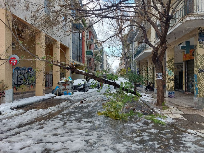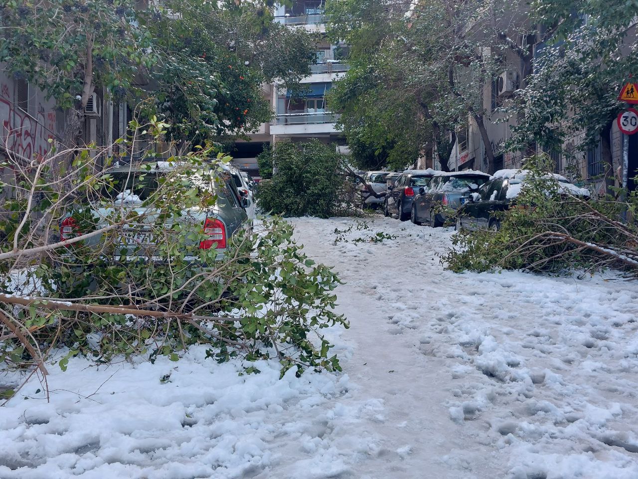 Το in συνεχίζει την αυτοψία του στους δρόμους της Αθήνας, όπου αν κάποιος κάνει μια βόλτα, θα δει ότι το χιόνι σε πολλά σημεία δεν έχει λιώσει, ενώ οι παρακάτω φωτογραφίες με τα πεσμένα δέντρα είναι ενδεικτικές.