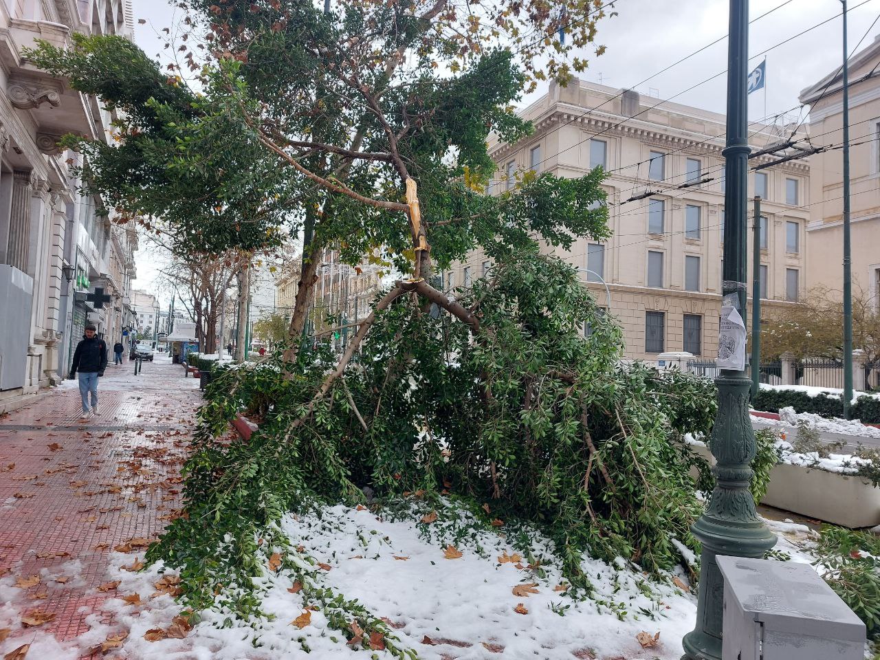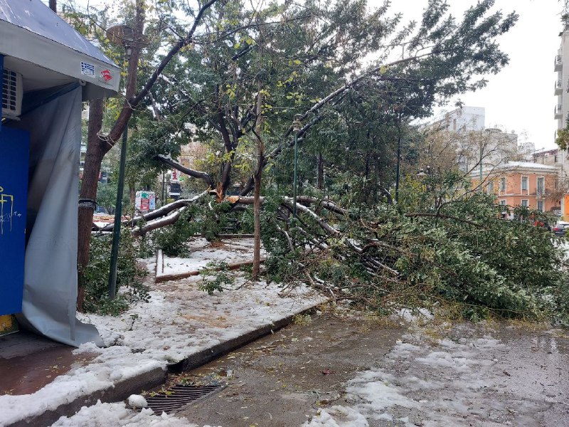 Πεσμένα δέντρα στην πλατεία Εξαρχείων και στη Σολωμού